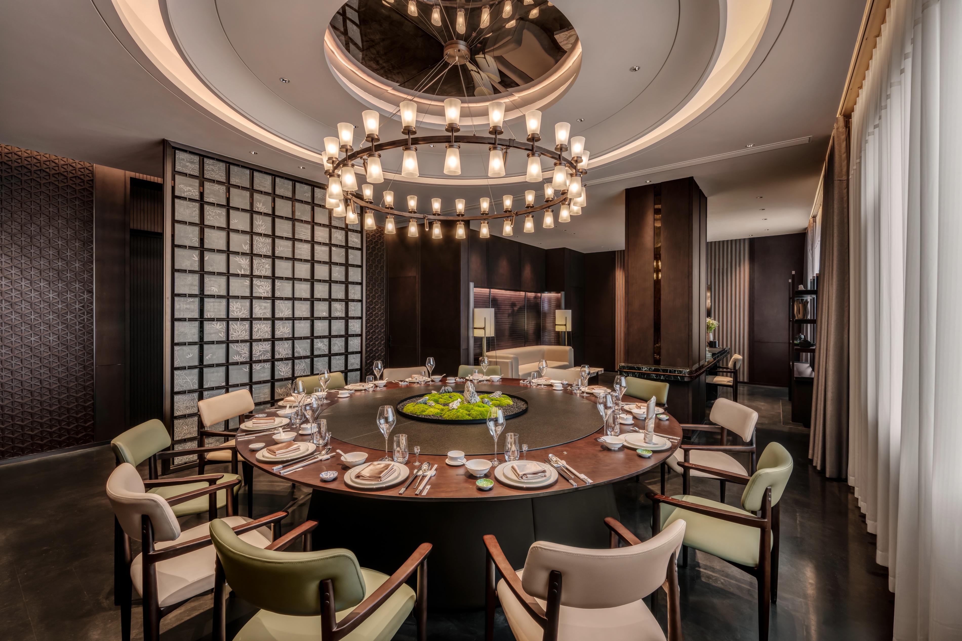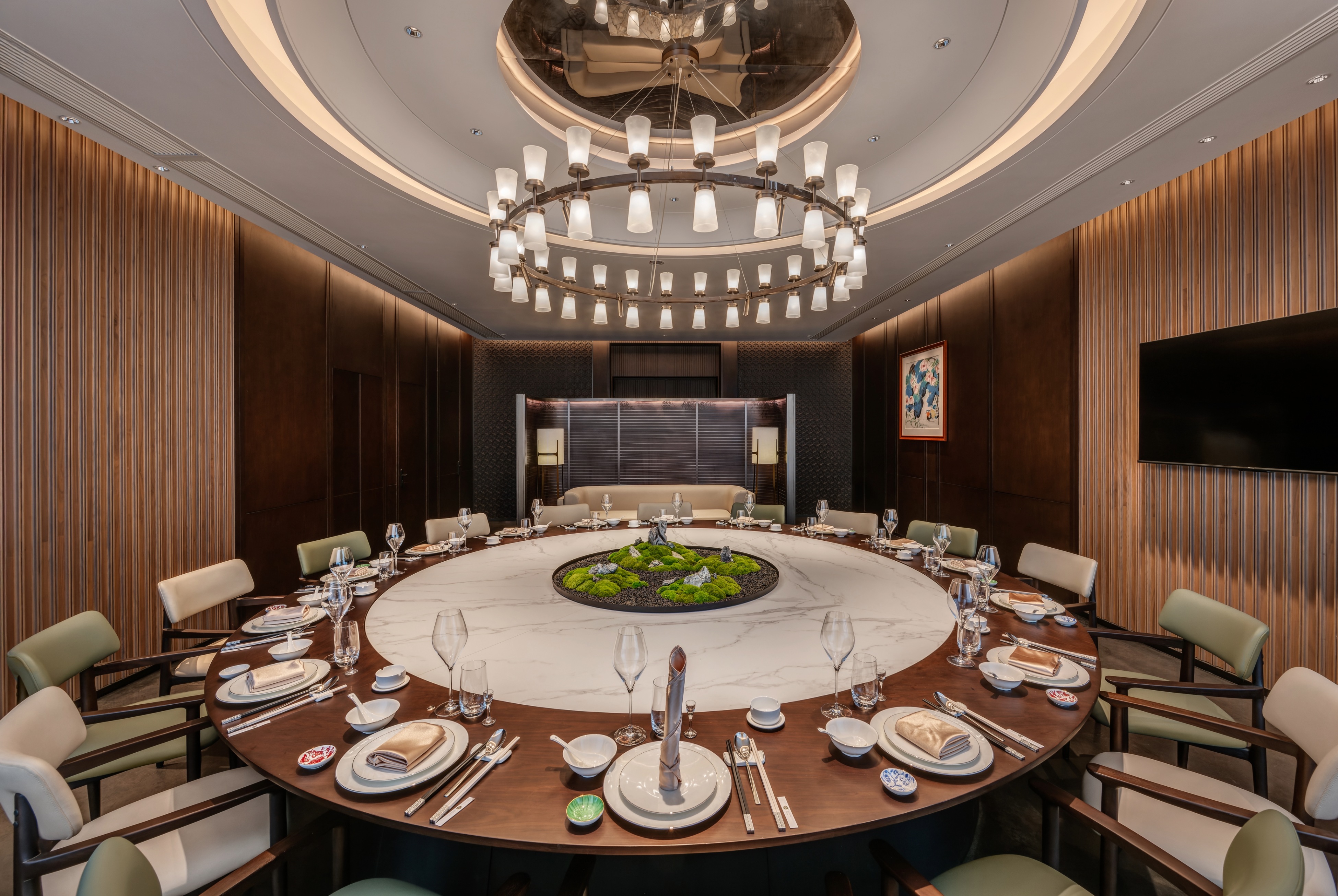 The banquet hall and private dining rooms at Leshang Jinhuan Hotel have been transformed from outdated spaces into contemporary showcases of Eastern hospitality.