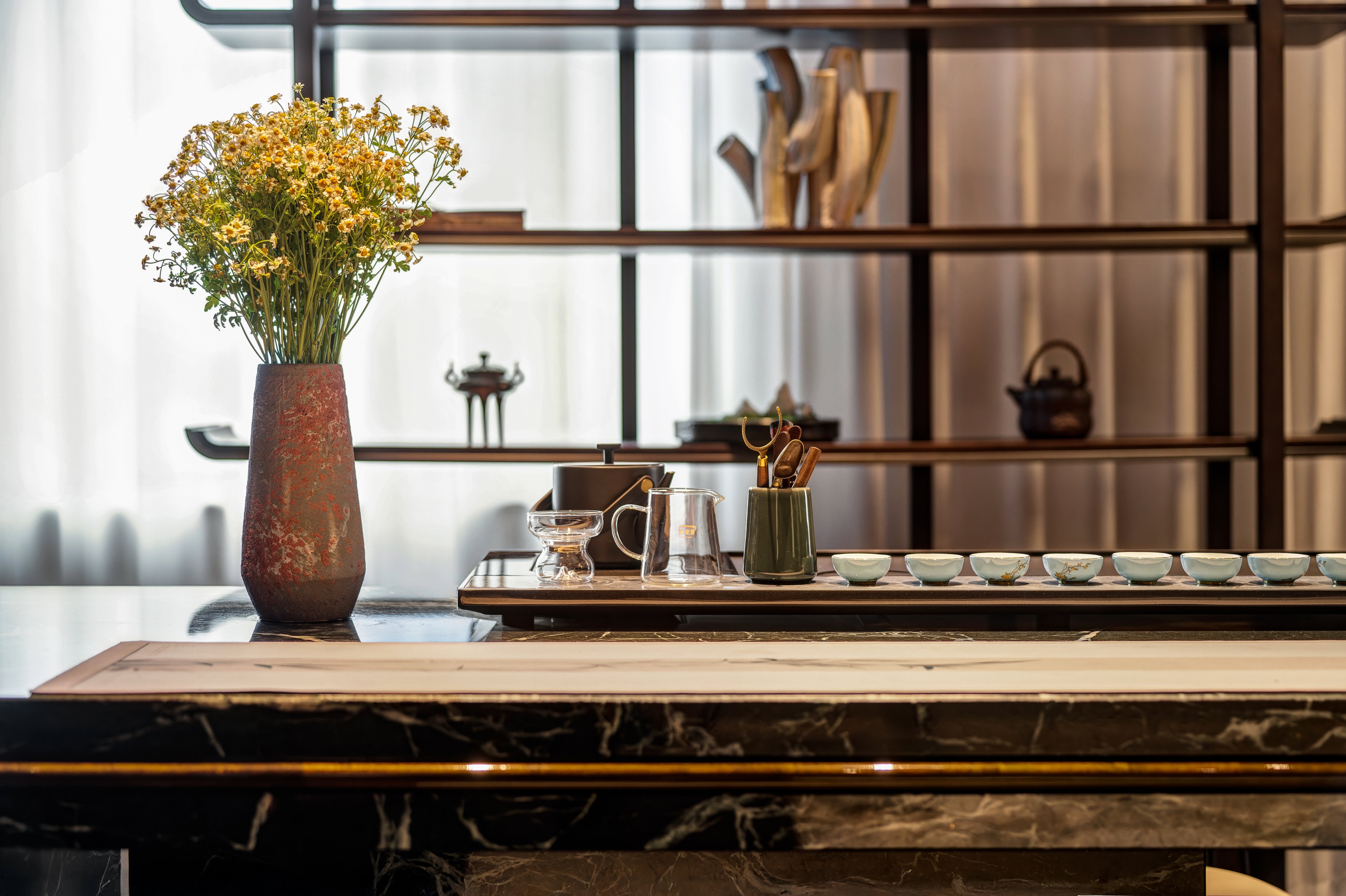 Once where awkward layouts and poor lighting once discouraged usage of space, elegant designs now celebrate Sichuan’s cultural heritage through modern interpretations of traditional elements. Adjacent private dining rooms feature translucent bamboo screens that filter light while maintaining visual connections between areas. These elegant dividers create layered spatial experiences, balancing privacy with openness. Muted earth tones and textured wall treatments reference local craftsmanship without overwhelming the senses.
