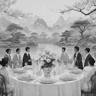 In the main banquet hall, bamboo-node patterned partition establishes a warm foundation, while lighting fixtures shaped like sprouting bamboo shoots symbolize renewal. The reimagined space accommodates both grand events and intimate gatherings, with careful attention to sightlines that enhance every occasion.