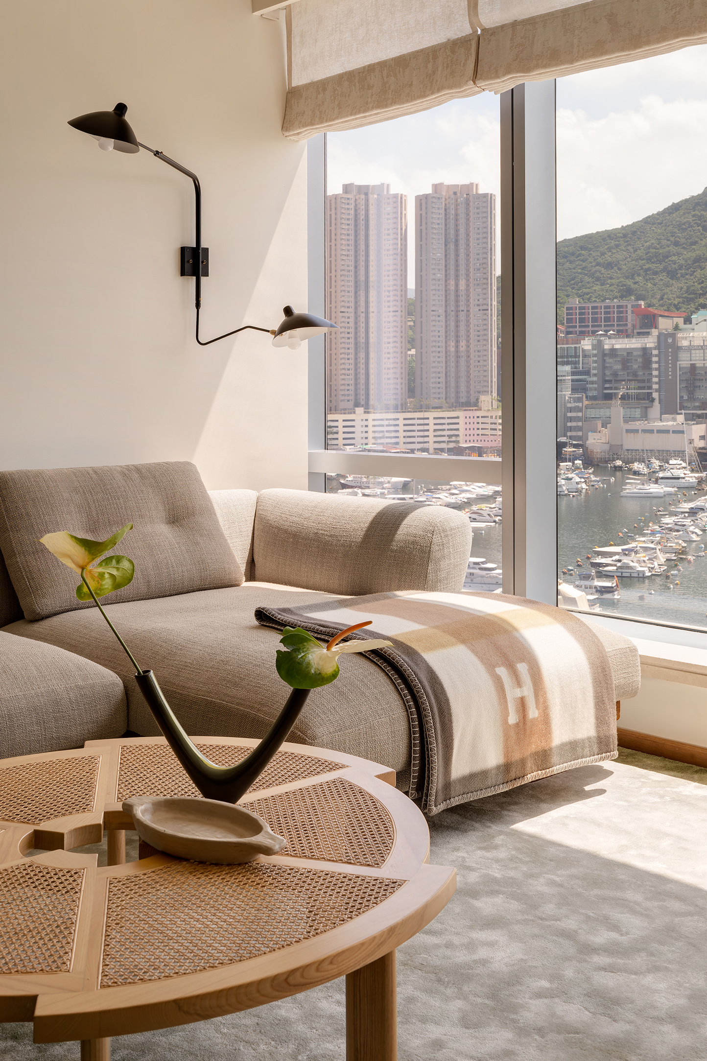 坐擁鴨脷洲深灣遊艇會的開闊景致,背倚玉桂山的蒼翠,LARVOTTO 讓水與山的對話成為設計母題。約 1,950 平方呎的單位,由開發商交付的冷調框架,被重塑為一個為四口之家而設、溫暖有序且可隨時間調適的避風港;在不動結構的前提下,為一家人的人生階段與需要預留彈性。